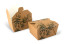 Bonbon box, kraft. Dimensions: 11.3 x 9 x 6.4cm. Made of kraft paper with a folding seal and standard printing. Convenient for handing out small meals, bonbons or a fresh salad.