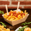 Een handig stevig snack/frietbakje voor het meegeven van verschillende soorten snacks en friet. Door Nanotech kraft te gebruiken is het snack/frietbakje tot 50% steviger en verbruiken we minder materiaal.